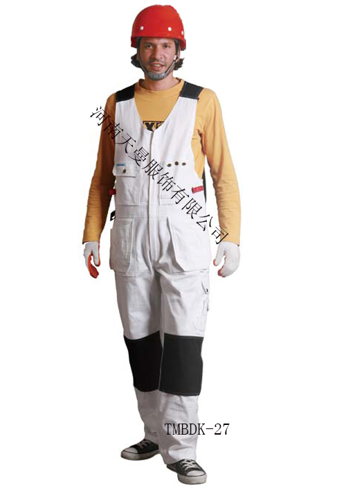 - 產(chǎn)品簡介:背帶褲 新款背帶褲 產(chǎn)品詳細(xì)描述 : 面料:純棉 10*10,72*40,260-270 gsm;兩個帶蓋胸兜;前門襟塑脂拉鏈, 兩個活動式前下兜,腿部工具兜,腰部可以調(diào)節(jié)松緊,膝蓋部位另加一層防護(hù)布料。