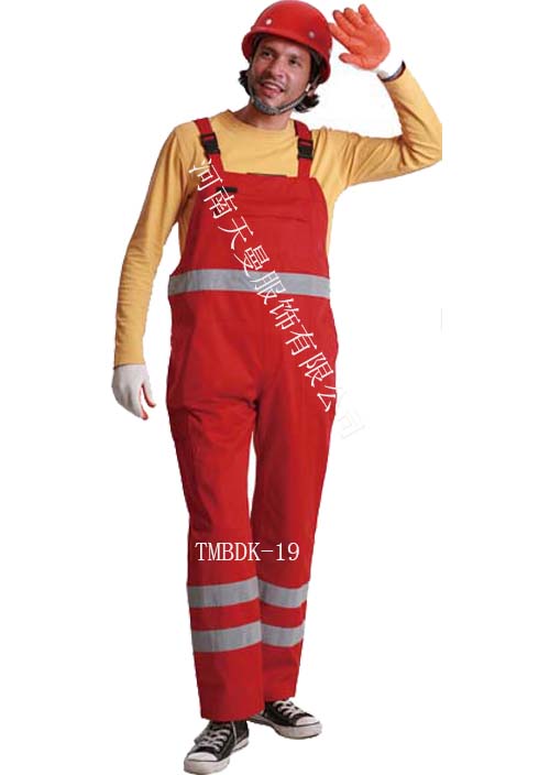 - 產(chǎn)品簡介:背帶褲,反光條背帶褲,產(chǎn)品詳細(xì)描述 : 面料:T/C, 16*12,108*56,260-270GSM;5CM反光條環(huán)繞衣前,衣后和雙褲腿一周,一個帶蓋胸兜,塑脂拉鏈,兩個斜插兜,背帶松緊帶并有卡扣可以調(diào)節(jié)背帶長度,腰部可調(diào)節(jié)松緊。