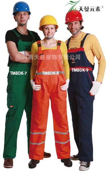 - 產(chǎn)品簡介:TMBDK-07: 面料:滌棉 20*16,120*60,235-245 gsm;一個胸兜帶有5號隱藏式塑脂拉鏈;前門襟塑脂拉鏈, 兩個斜插褲兜,腿部工具兜,腰部可以調(diào)節(jié)松緊,背帶松緊帶并有卡扣可以調(diào)節(jié)長短。TMBDK-08:面料:滌棉 16*12,108*56,260-270 gsm;一個帶蓋胸兜;前門襟塑脂拉鏈, 兩個斜插褲兜,腰部可以調(diào)節(jié)松緊,背帶松緊帶并有卡扣可以調(diào)節(jié)長短,一條3CM反光條在胸部外另有兩條環(huán)繞褲腿一周。