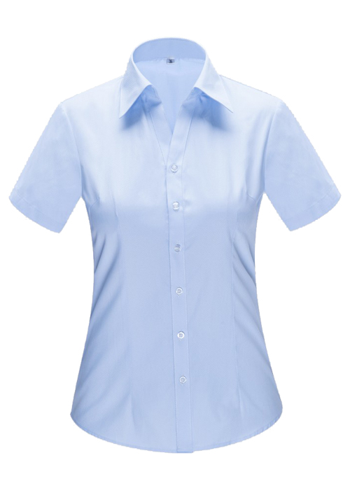 品名:女短袖v領襯衣;版型:修身版;貨號:YWD4507 ;面料:Y4507;顏色:藍色明斜條紋 ;Fabric:C45/T55