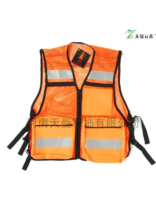 • 產品簡介:產品詳細描述 :   面料:100%純滌綸,配料為桔黃色網眼布,胸前有反光條,下擺兜有二條反條,下兜有兩條尼龍拉鏈,馬甲邊上有黑色邊布。